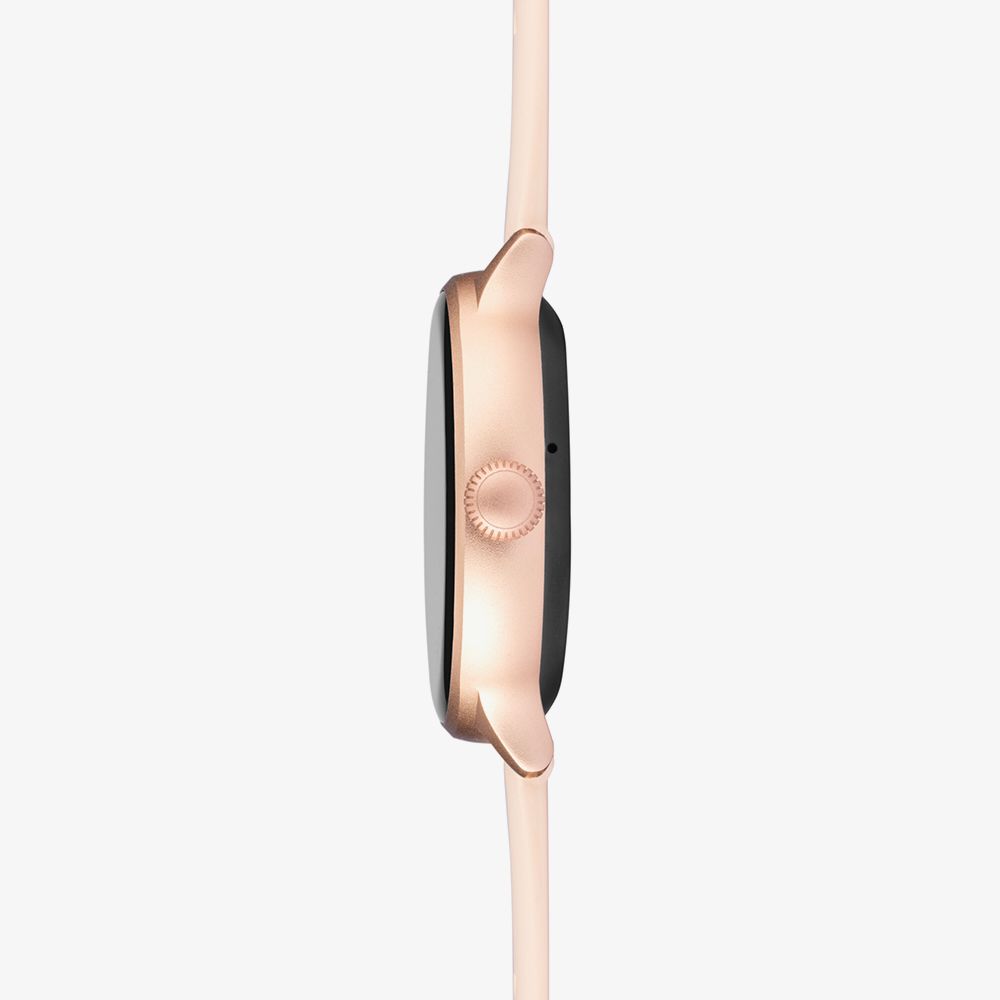 • Presented on a pink rubber strap with traditional buckle.