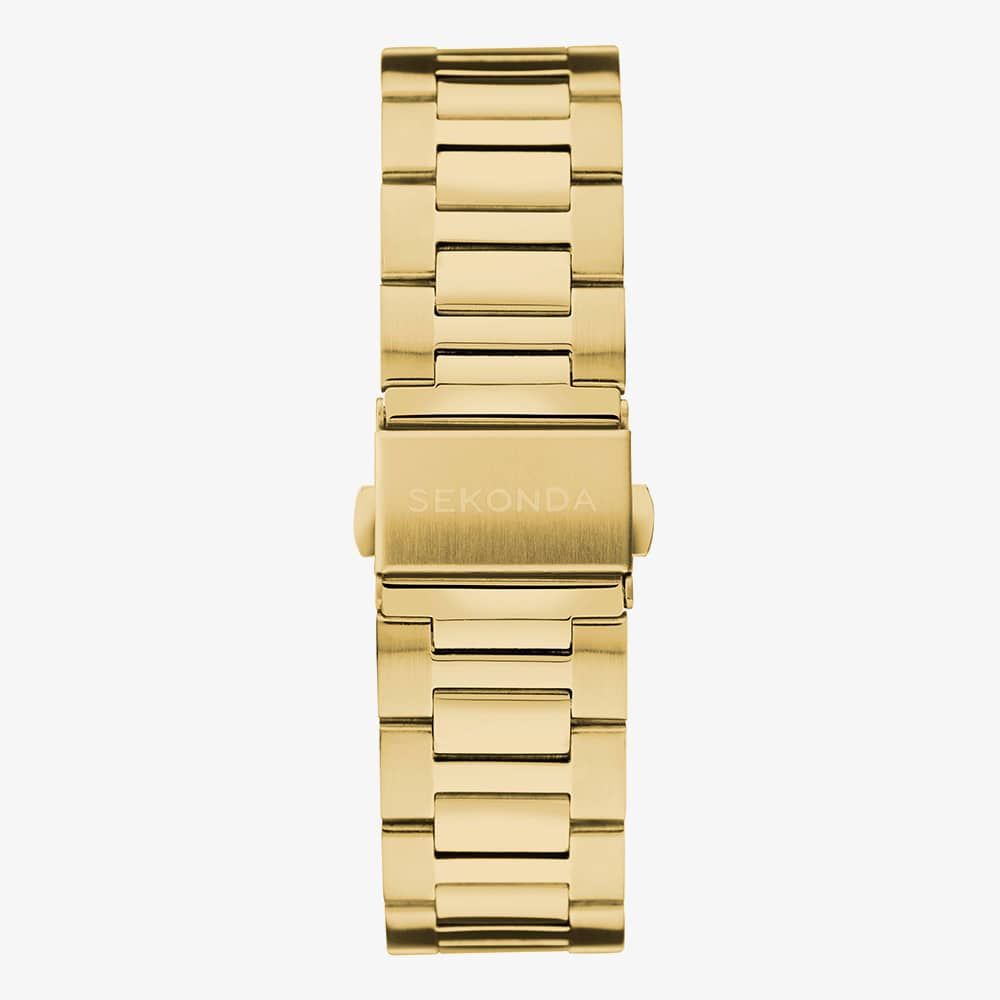 • Presented on a yellow gold plated stainless steel bracelet with push button deployment clasp.