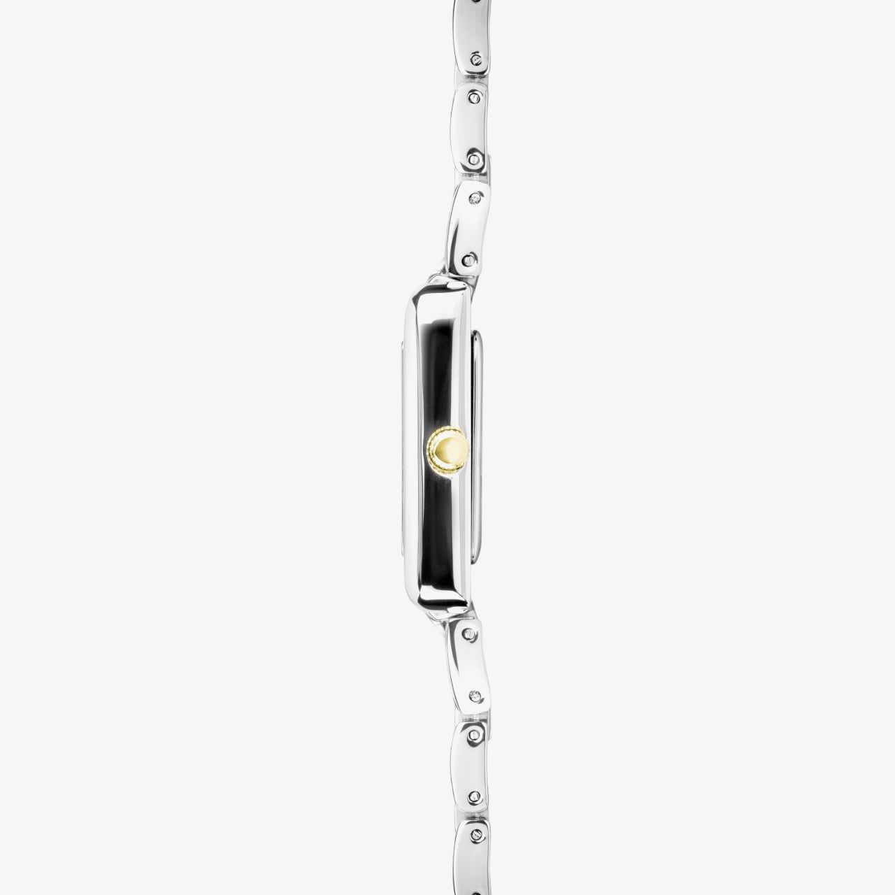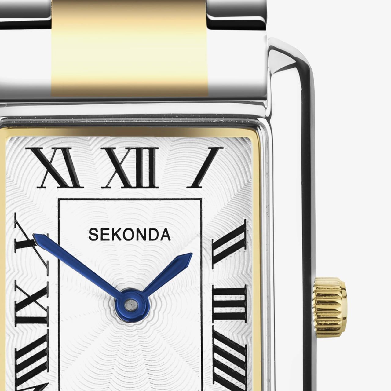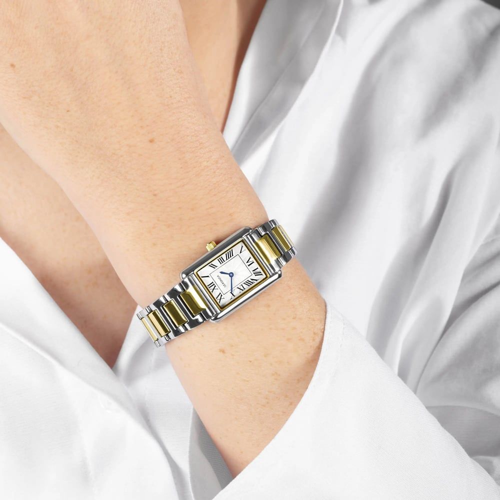 A beautifully elegant timepiece that blends vintage charm with modern sophistication. Featuring a sleek rectangular case, this watch offers a unique and refined aesthetic. The stylish dial, enhanced with delicate detailing, adds a touch of timeless elegance. Designed with a comfortable and durable two-tone bracelet, it ensures a secure fit for all-day wear. With precise quartz movement, this watch provides reliable timekeeping. Whether worn casually or for special occasions, this watch is a perfect statement piece for any collection.