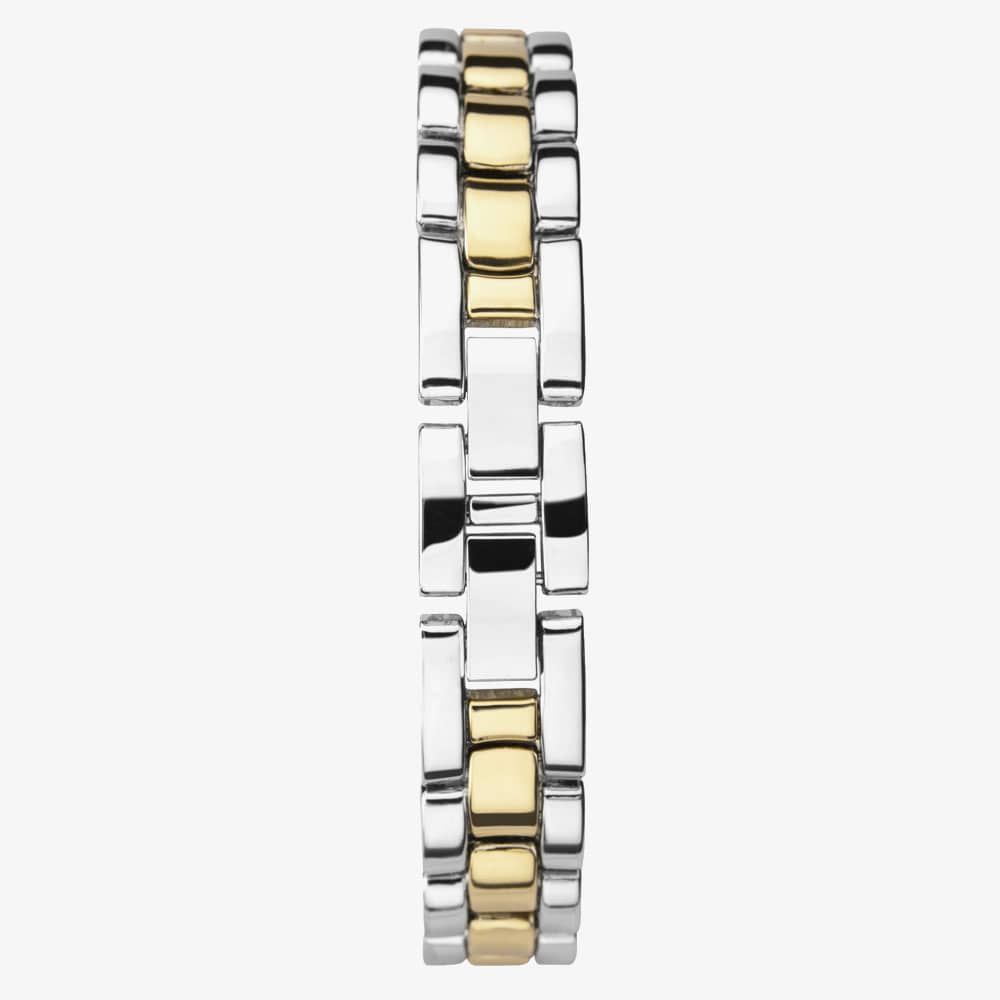 • Presented on a two colour yellow gold plated stainless steel bracelet with push button deployment clasp.