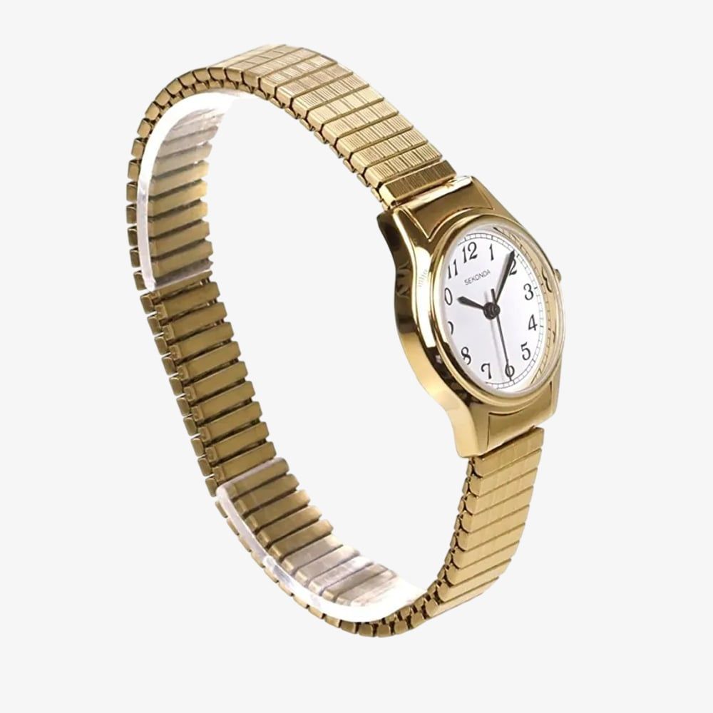 Combining classic elegance with effortless practicality. Featuring a sleek gold-tone stainless steel case and an expandable bracelet for a comfortable fit, this timepiece is designed for everyday wear. The clear, easy-to-read white dial is complemented by bold black numerals and hands, ensuring excellent visibility at a glance. Powered by the reliable quartz movement, this watch offers precision and durability.