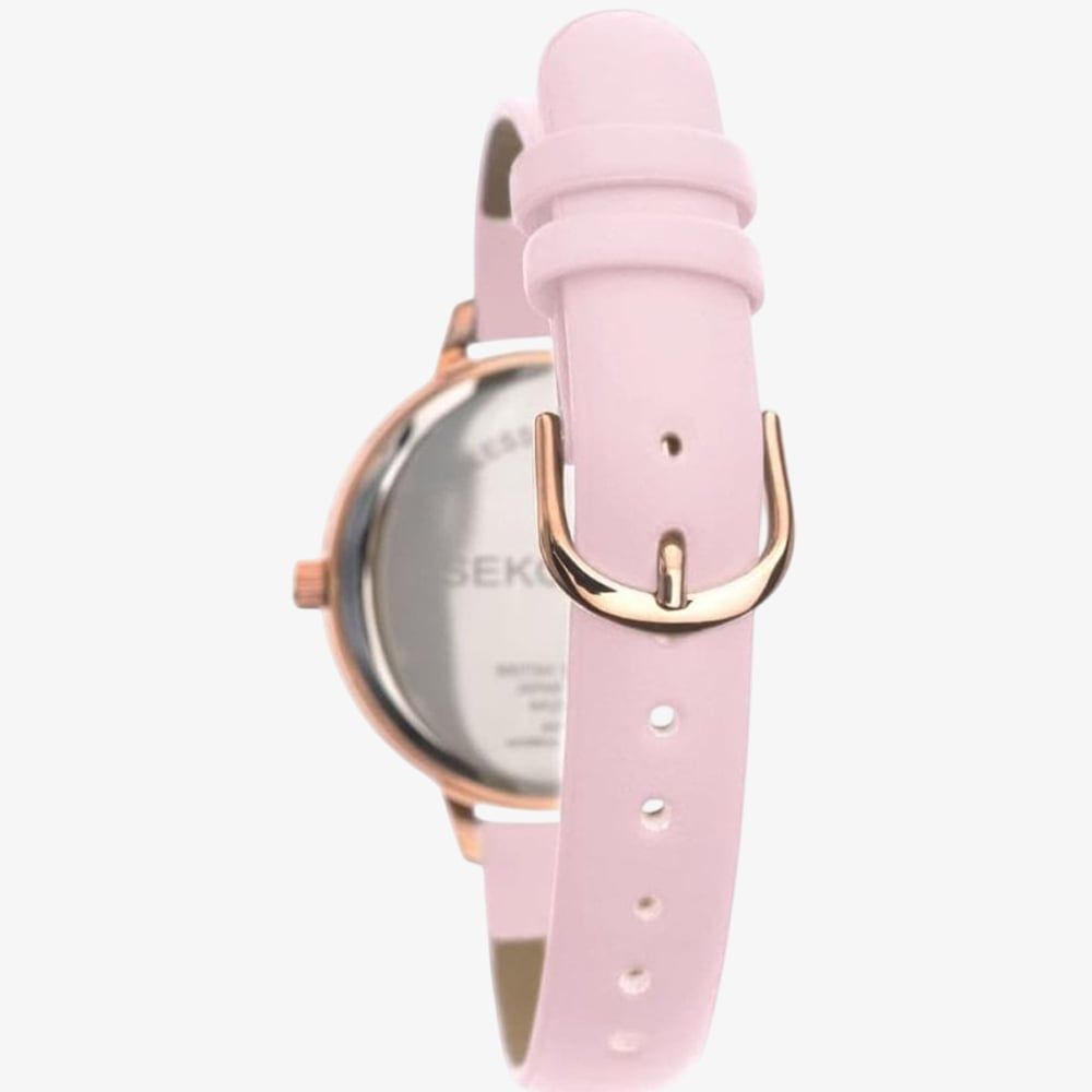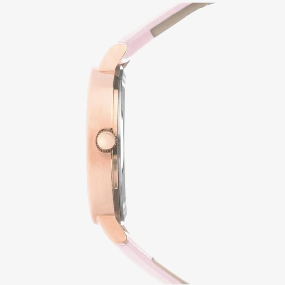 This timepiece is a perfect fusion of style and functionality. The soft pink leather strap complements the sleek stainless steel rose gold-coloured case, adorned with a subtle tree motif on the dial. With its quartz movement ensuring precise timekeeping, this watch not only adds a touch of feminine charm but also offers reliable performance for any occasion. Whether worn casually or formally, it effortlessly enhances any ensemble.