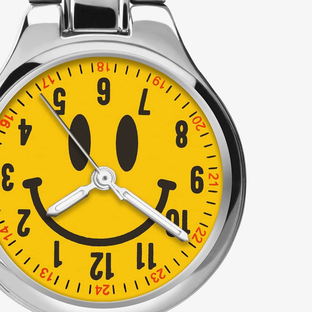 Add a playful finish to your everyday look with this practical nurses fob watch. Created in stainless steel, the piece features a yellow smiley face dial that is set with black hour markers and luminescent hands.