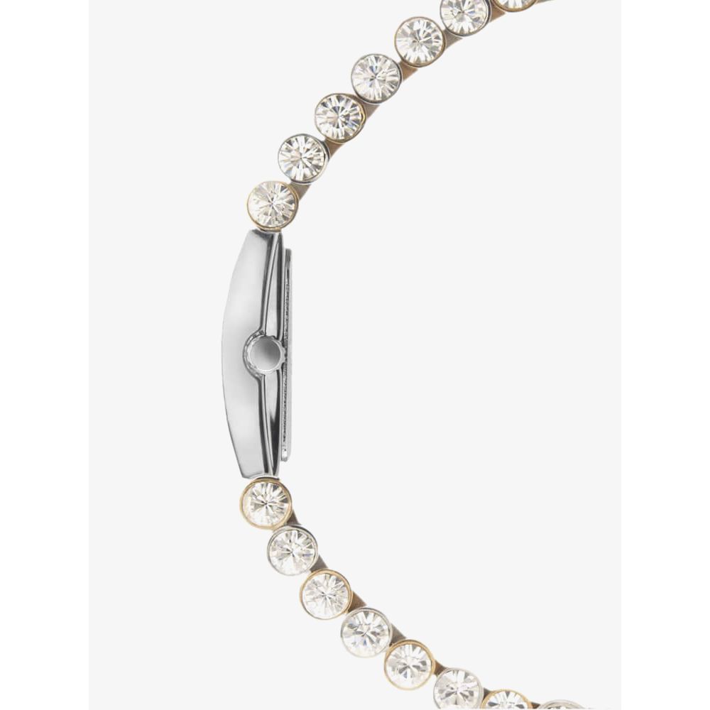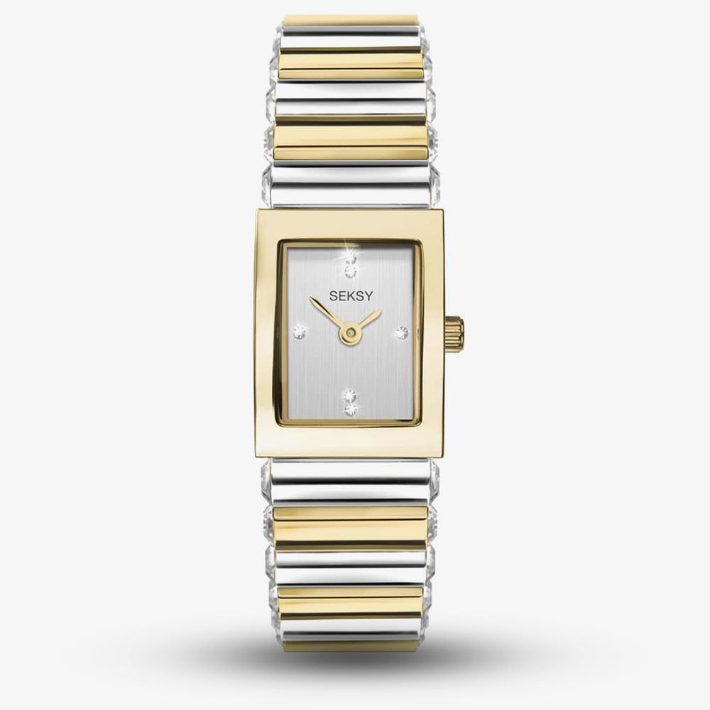 Add a wow factor to your evening look with this stunning SEKSY Edge watch. The timepiece features a rectangular gold plated case surrounding a sleek silver stone set dial. The piece is fastened with a two-tone gold plated stainless steel bracelet that is beautifully embellished with swarovski crystals.