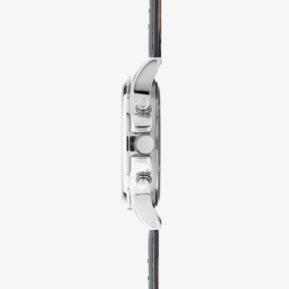 This watch features a sleek black leather strap and dual time display. Crafted with precision and style in mind, this timepiece seamlessly blends classic design with modern functionality. The striking black leather strap exudes timeless elegance, while the dual time display feature ensures you stay punctual across different time zones.