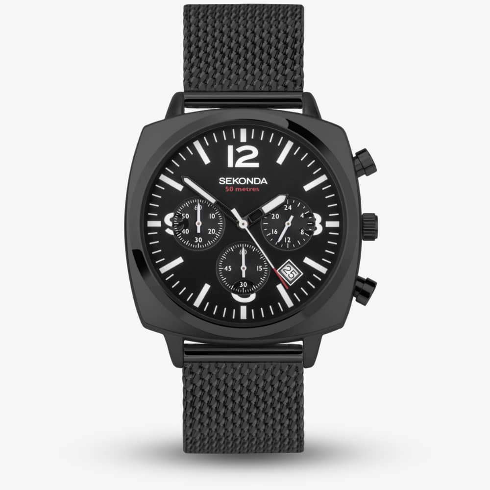 https://www.thbaker.co.uk/sekonda-mens-airborne-black-chronograph-watch-30102152065Sekonda Mens Airborne Black Chronograph Watch 30102https://www.thbaker.co.uk/media/catalog/product/2/1/21-02-25128800_sekonda_01.jpg47.9599.99GBPOutOfStock(SPEC) Airborne Blk Ss Mesh Bw Blk Chrn Dl A sporty and stylish chronograph watch from the Airborne collection, this watch features a unique square black alloy case and a matching black dial with white accents for easy readability. This watch also comes equipped with a chronograph function for precise timing, a subtle date display, and is water resistant up to 50m. The black stainless steel mesh bracelet also adds a modern touch and ensures a comfortable fit.