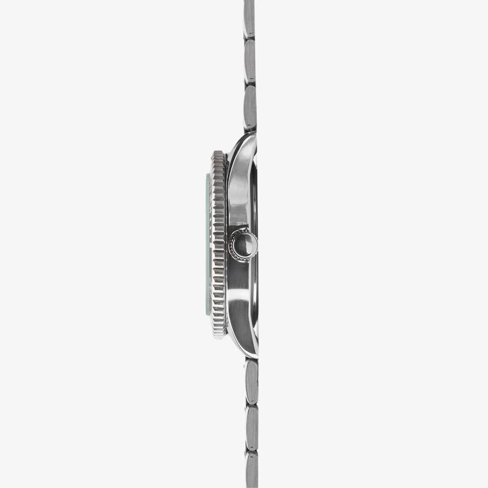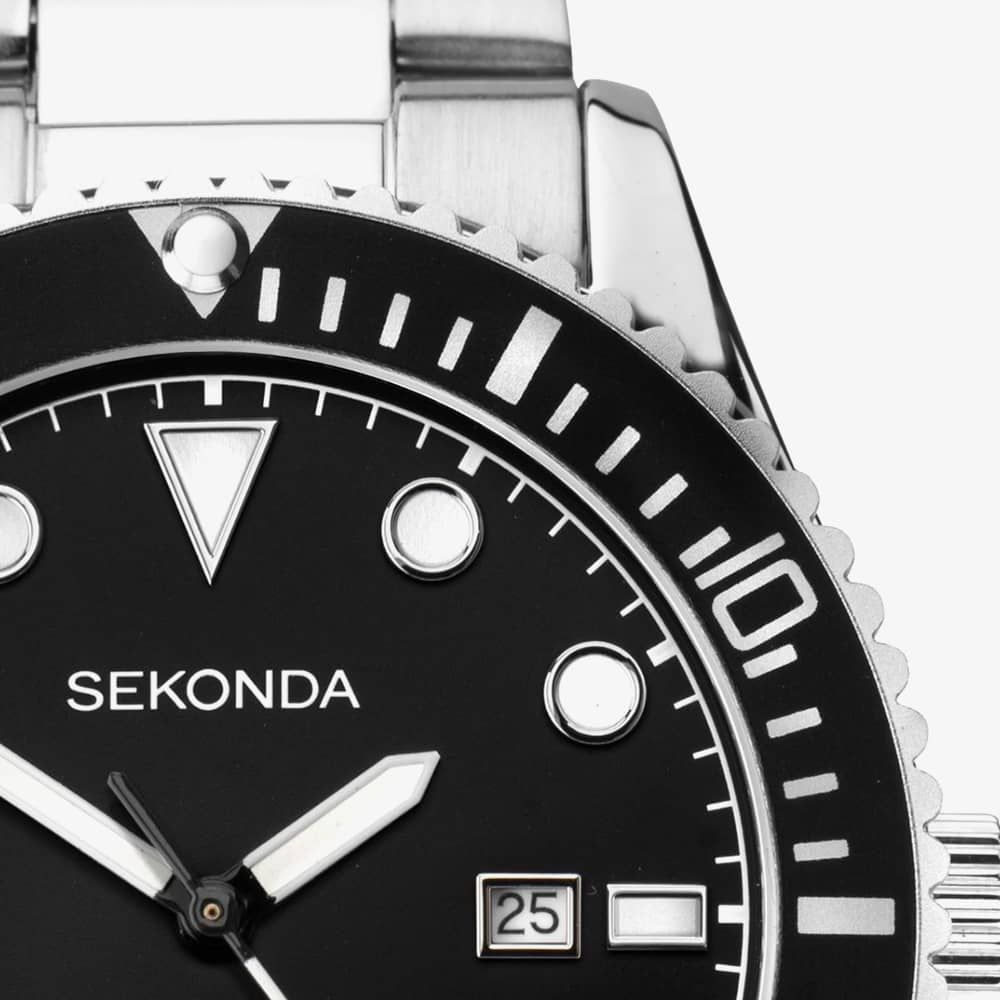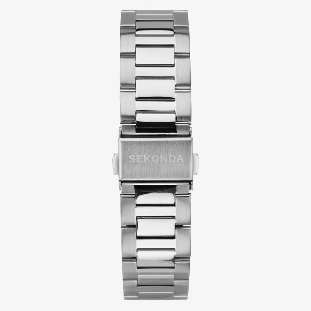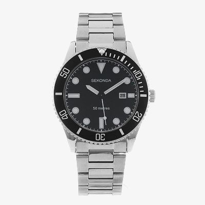 Crafted in stainless steel, this stylish timepiece is perfect for everyday wear. The jet black dial is adorned with luminescent hour markers and hands and a date window at 3'clock. The piece is finished with a stainless steel bracelet and a push deployment clasp fastening.