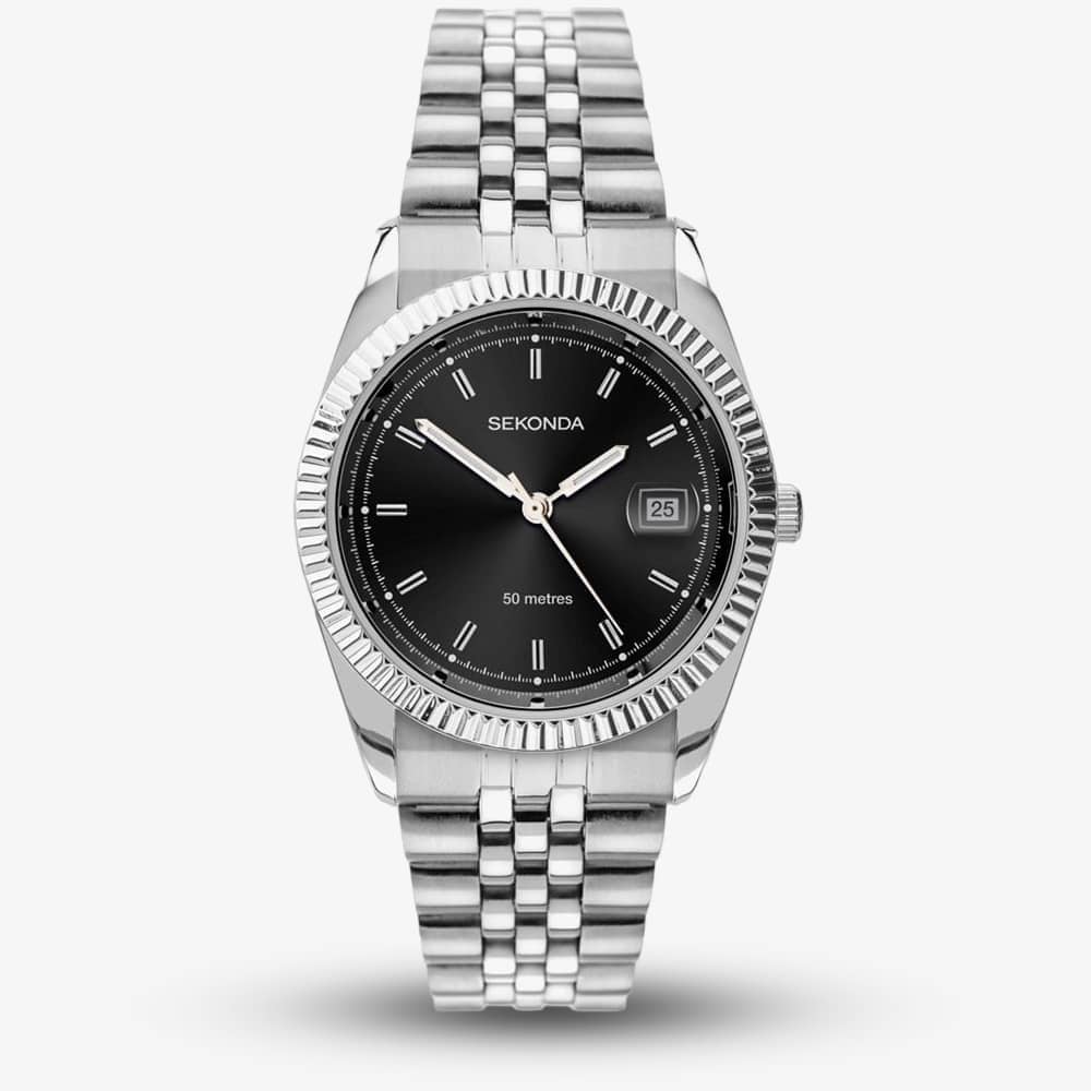With its sleek stainless steel construction and bold black dial, this timepiece exudes sophistication and confidence. Elevate your look with this classic accessory that effortlessly combines style and functionality.
