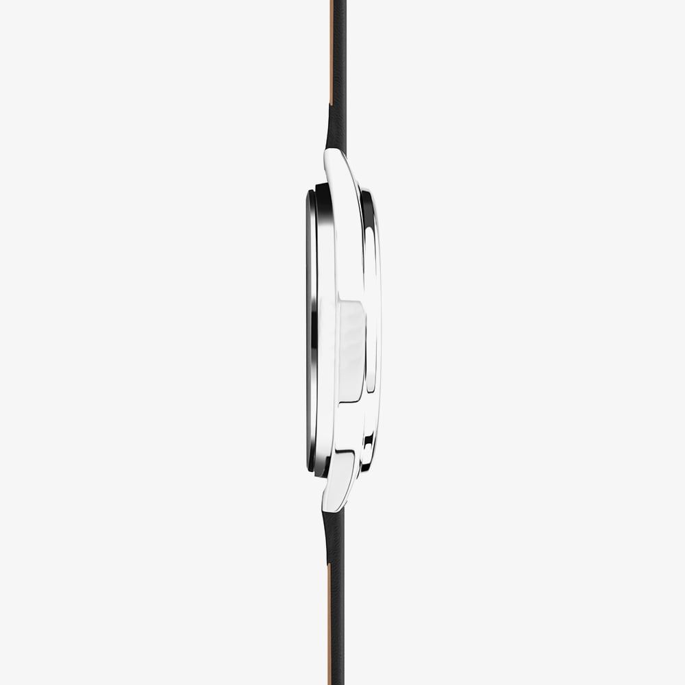 The Sekonda 1851 exudes a quiet sophistication, featuring a 41.0mm silver-toned metal alloy case with a slim 9.0mm deep profile. Its silver dial, marked with clear Arabic numerals, is shielded by durable mineral crystal glass, offering both elegance and practicality. The black leather strap, secured with a traditional buckle, feels supple against the wrist and complements the polished silver case beautifully.