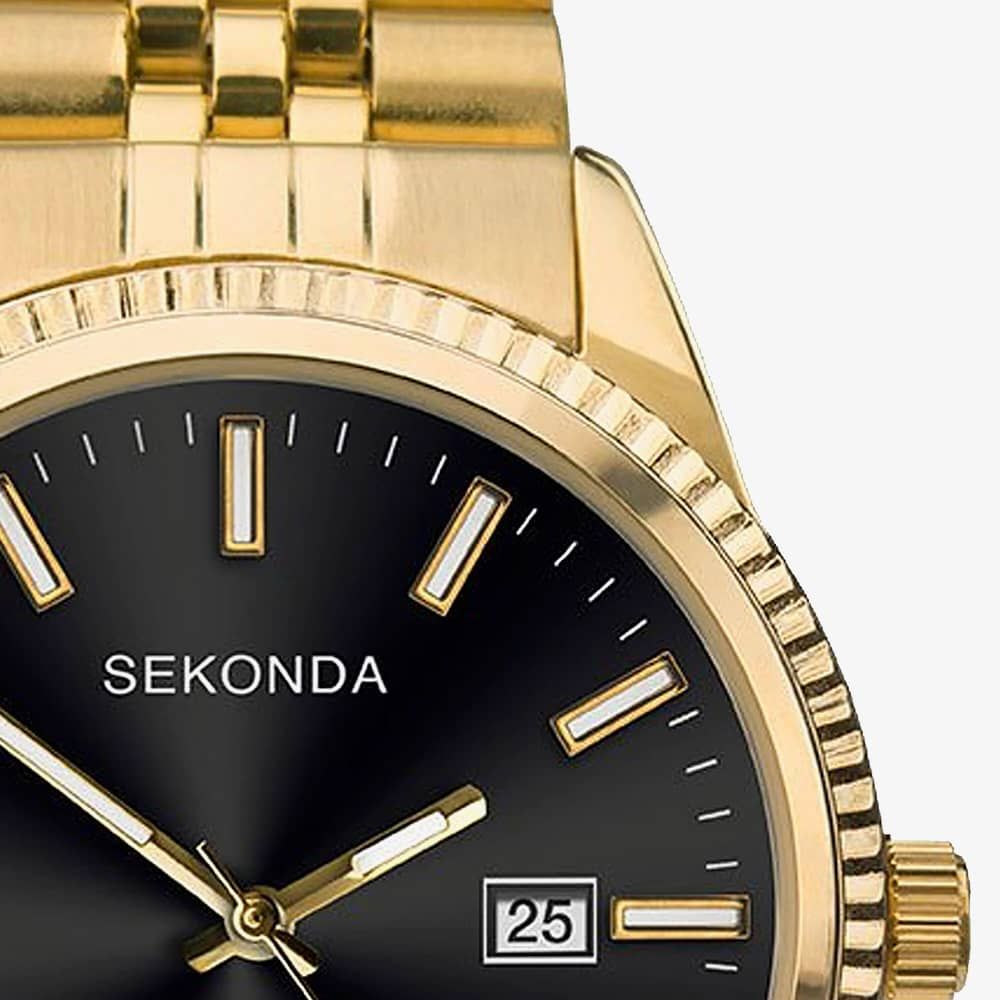 Crafted with precision, its luxurious gold-plated exterior exudes refinement, catching the eye with its radiant luster. The black dial, a canvas of elegance, provides a striking contrast, enhancing legibility and adding a touch of modern allure. Perfect for the discerning gentleman, this timepiece combines timeless sophistication with contemporary flair, ensuring a distinguished presence on any occasion.
