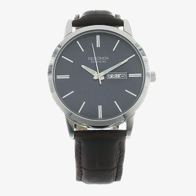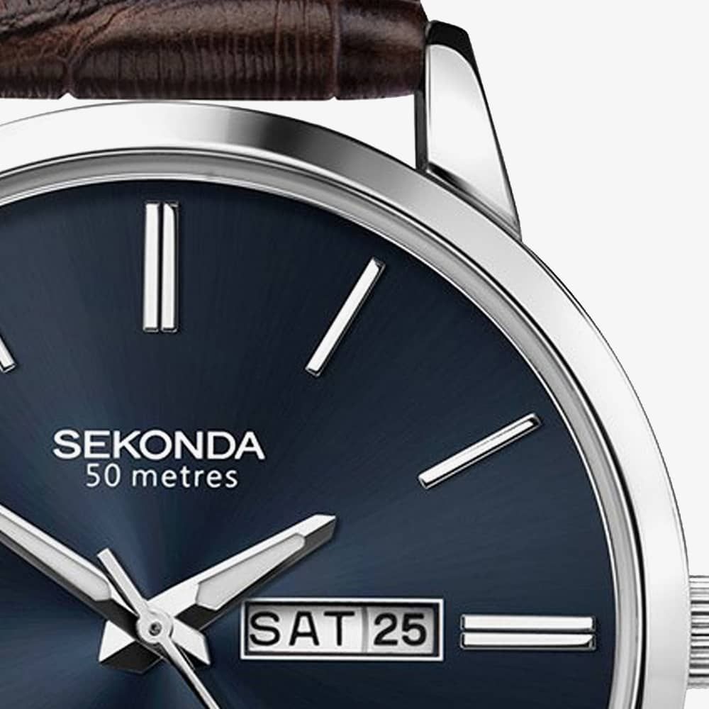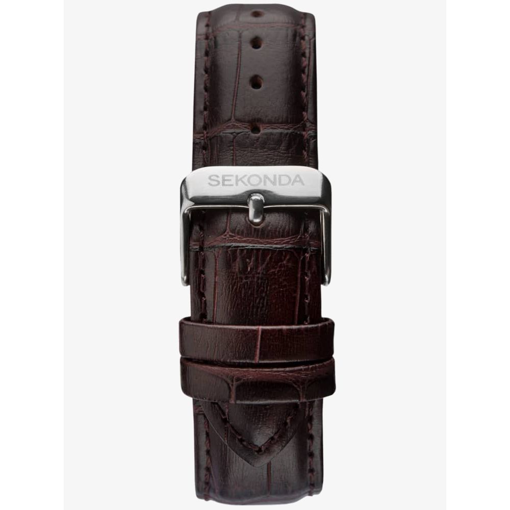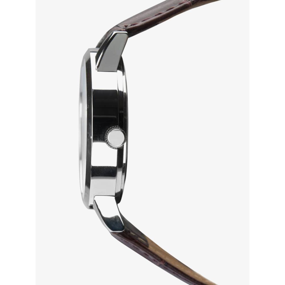 Combining classic design with contemporary style, this watch is perfect for everyday wear. The timepiece features a slick chrome coloured case with a contrasting blue sun ray dial. The watch is finished with a vintage dark brown croco grain leather strap.