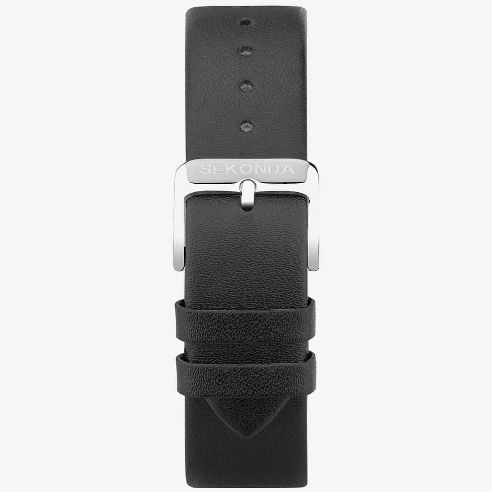 This watch has a sleek black leather strap and a crisp white dial. This timepiece seamlessly merges classic elegance with modern flair, making it the perfect accessory for any occasion. With its minimalist design and refined details, it will elevate your style with its understated yet distinguished presence.