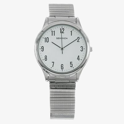 This is a simplistic timepiece with a slim design in stainless steel. This Gents Sekonda watch features an expandable strap for comfort and a clear white dial with prominent black numeral hour markers.