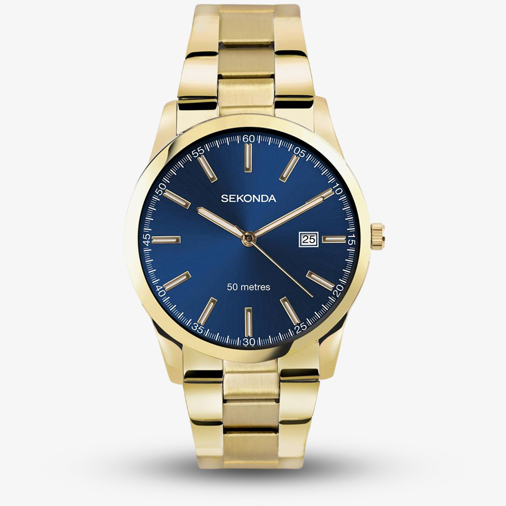 This luxurious gold-plated watch is adorned with a captivating blue dial. This timepiece exudes opulence and sophistication, combining the richness of gold with the depth of the blue hue. Elegant and eye-catching, it's a statement accessory that elevates any ensemble with its timeless charm.