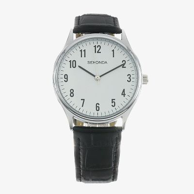 Encased in a sleek silver metal alloy case, this timepiece exudes understated elegance. Paired with a supple black leather strap, it offers both sophistication and versatility, making it the perfect accessory for any occasion.
