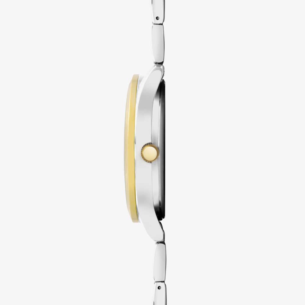 • Presented on a two colour yellow gold plated stainless steel bracelet with push button deployment clasp.