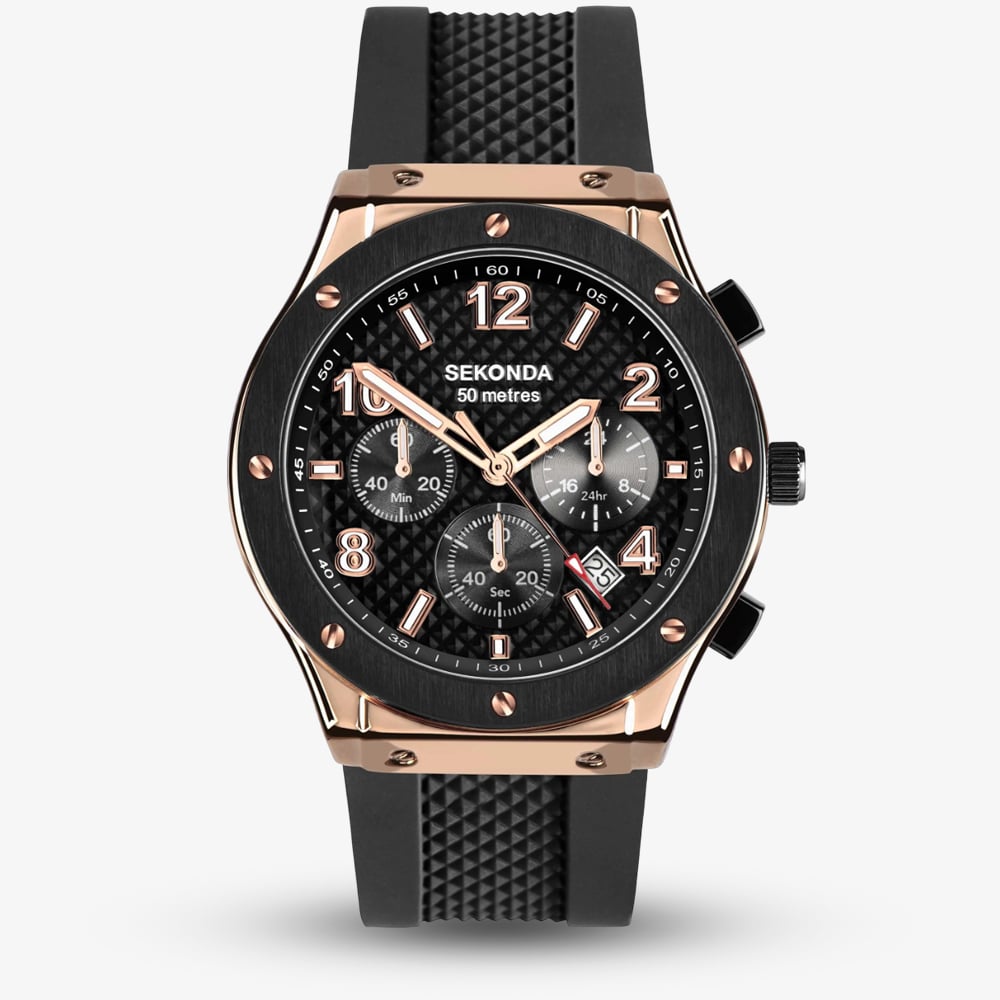 a dynamic and functional timepiece designed for the modern man. It combines a bold black dial with the added complexity of a chronograph, offering both style and precision. This watch is built for those who demand performance and appreciate a bold, contemporary aesthetic.