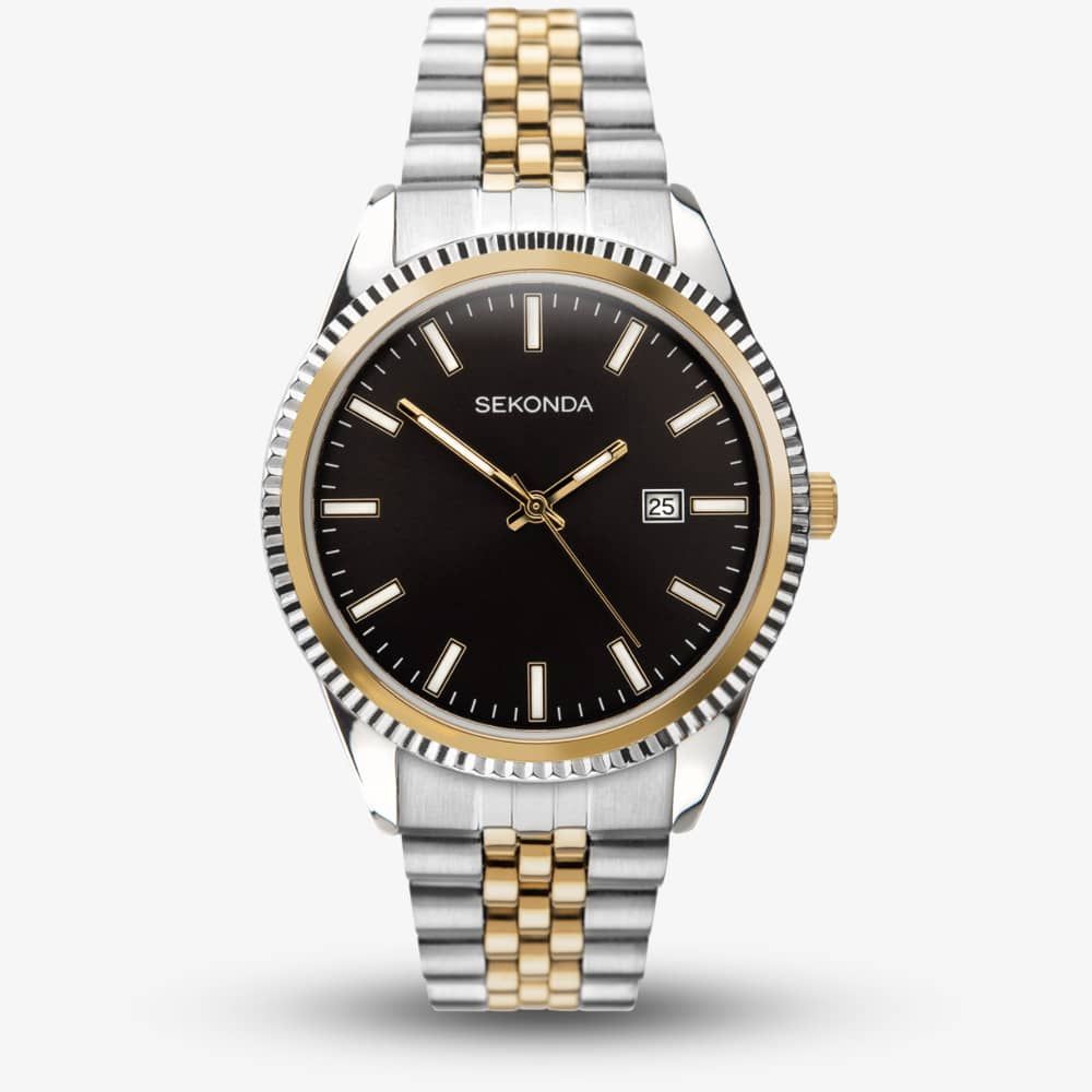 With its striking contrast of silver and gold tones, the bracelet exudes refinement, while the black dial adds a touch of mystery and depth. Whether you're dressing up for a formal event or keeping it casual, this watch effortlessly elevates your look with its understated yet distinctive design.