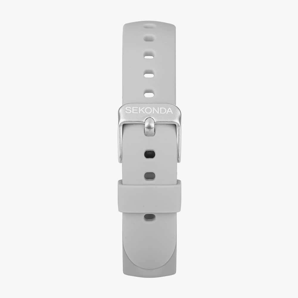 • Presented on a grey rubber strap with traditional buckle.