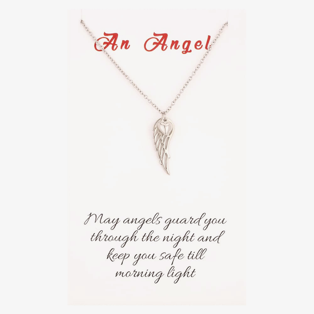 Uplifting and inspiring, there is a perfect message for every Sentiment that you wish to express. Add a favourite quote or jot down a shared memory to truly make each card personal. "May Angels guard you through the night and keep you safe till morning light"- this is the beautiful message expressed along with this open-work feathered angel wing pendant and the small heart charm that accompanies it.
