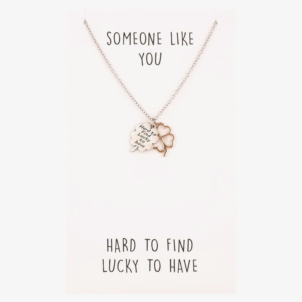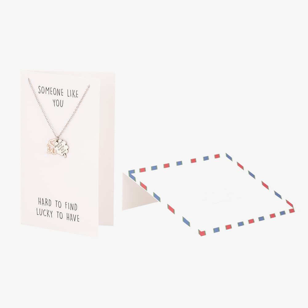 Uplifting and inspiring, there is a perfect message for every Sentiment that you wish to express. Add a favourite quote or jot down a shared memory to truly make each card personal. This cute engraved clover has a rose gold-tone cut-out frame and comes with the inscription "Someone like you- hard to find, lucky to have"