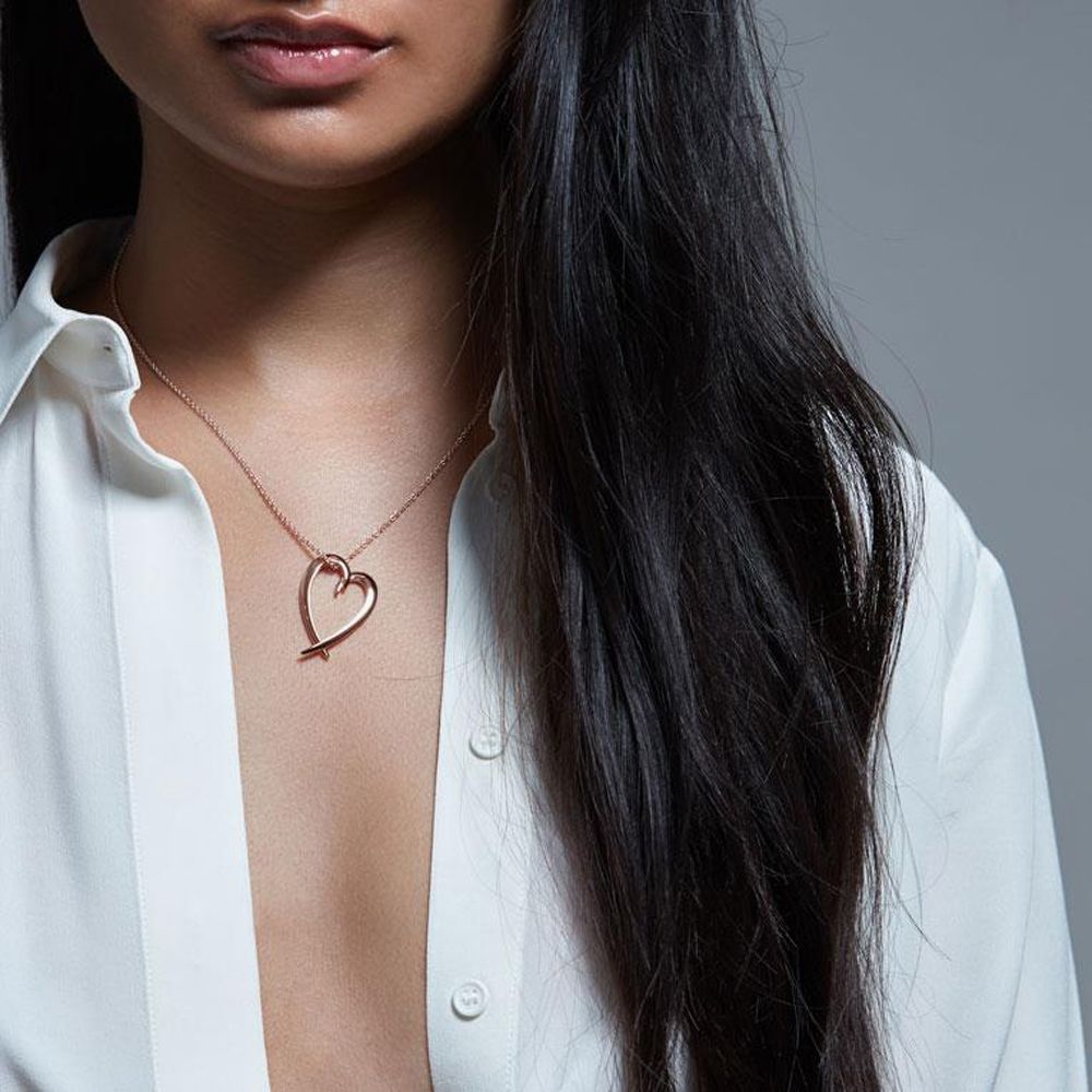 Shaun Leane Rose Gold Vermeil Heart Pendant Necklace, SA019.RVNANOS measures 44cm / 17.5” with a belcher chain and signature tag. This elegant necklace features a rose gold vermeil plated silver, heart pendant. The heart features two inward-facing hooks that delicately overlap to create the universal symbol of love.