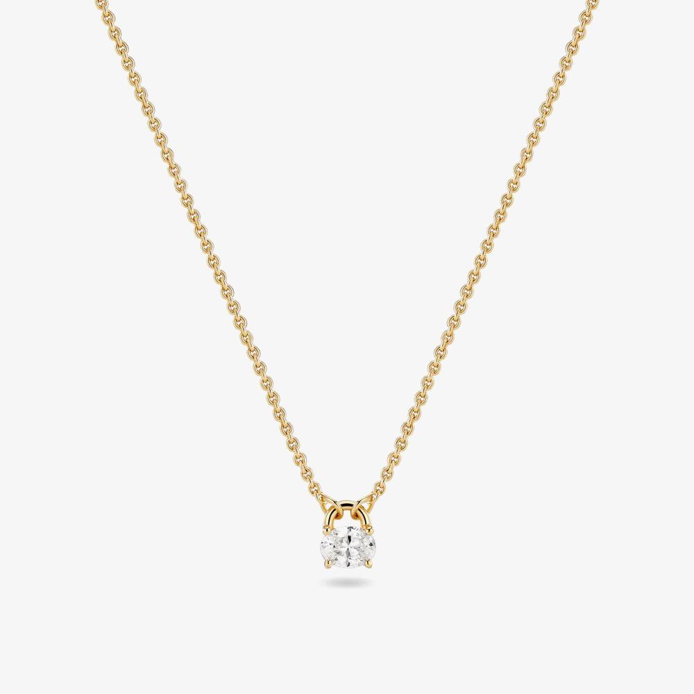 This sophisticated necklace features a sleek, elongated oval pendant plated with warm gold. The elegant oval is pavé-set with a dazzling cubic zirconia stone, creating a continuous sparkle that catches the light beautifully. This necklace embodies modern refinement and understated glamour, making it a versatile piece for both everyday wear and special occasions.