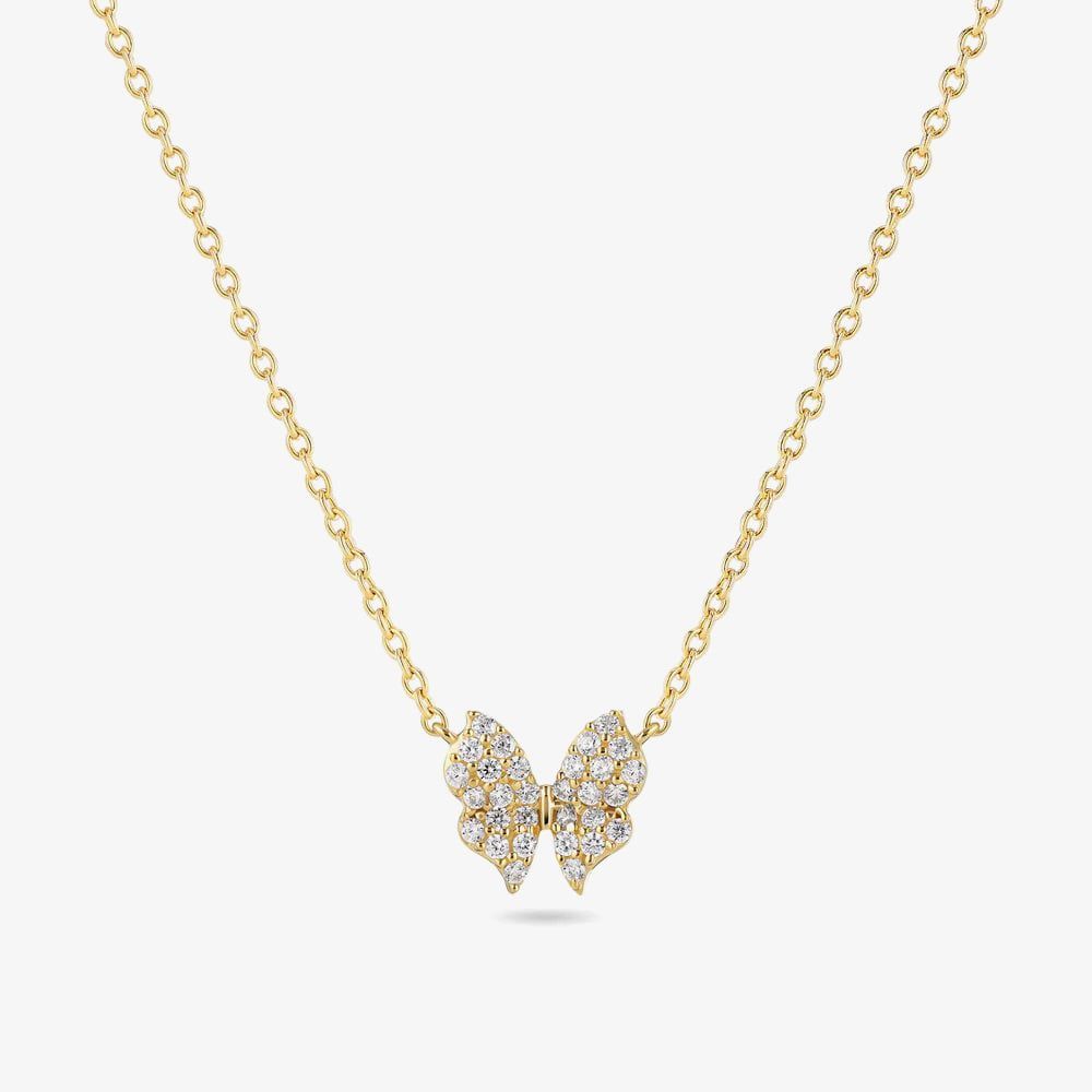 This delightful necklace features a delicate butterfly pendant beautifully plated in warm, radiant gold. The wings are adorned with shimmering cubic zirconia stones, catching the light and creating a captivating sparkle. Symbolising transformation and beauty, this necklace adds a touch of elegance and luxurious charm to any ensemble.