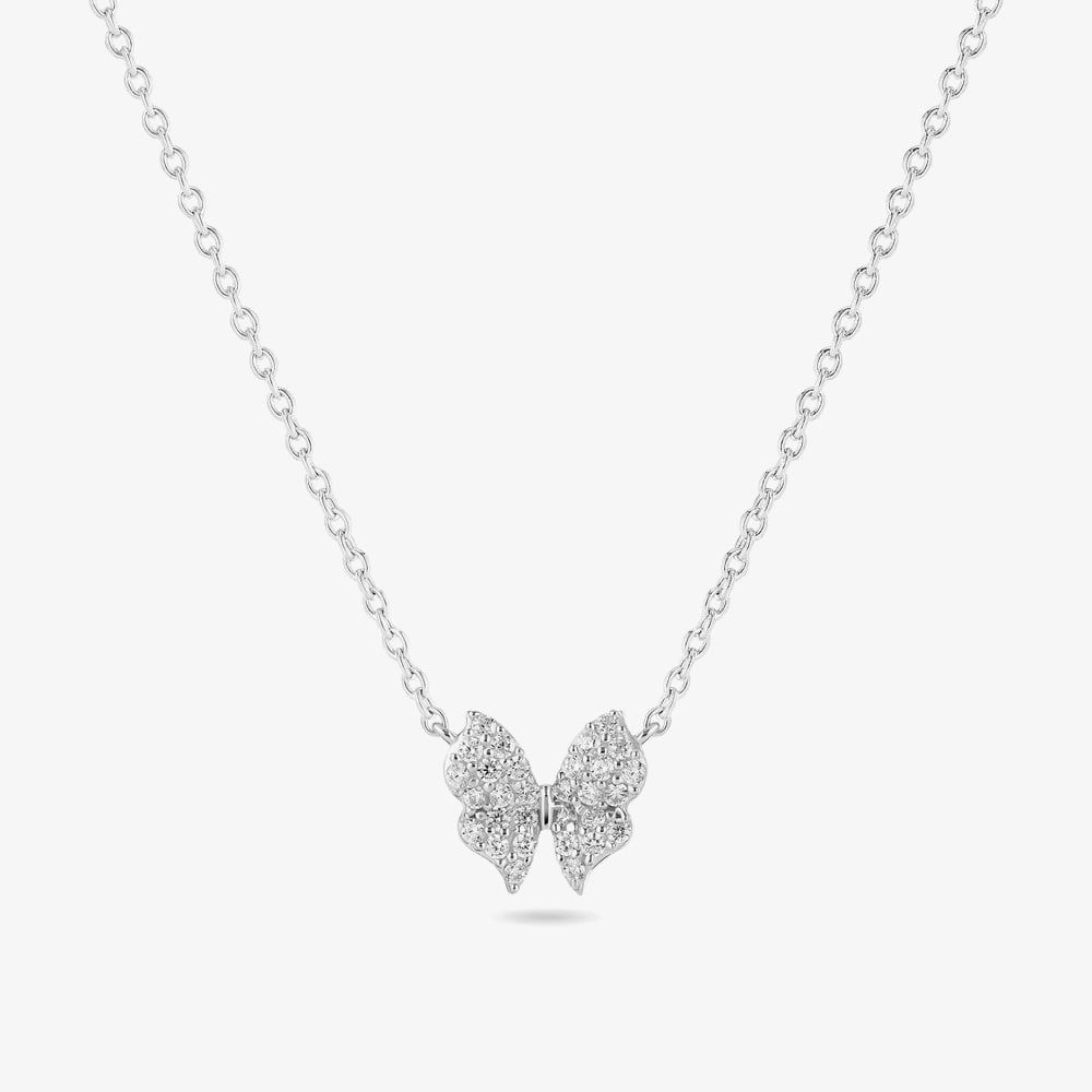 This enchanting necklace features a delicate butterfly pendant crafted from luminous sterling silver. The wings of the butterfly are adorned with sparkling cubic zirconia stones, effortlessly catching the light. Symbolising transformation and beauty, this necklace adds a touch of elegance and contemporary charm to any look.