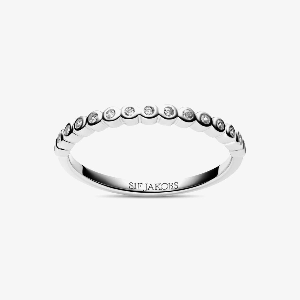 This elegant ring features a slim band crafted from polished sterling silver, adorned with a continuous row of dazzling cubic zirconia stones. The subtle shimmer of the stones adds a touch of refined glamour to this understated design. Perfect for adding a delicate sparkle to your everyday wear or a touch of subtle sophistication to evening looks.