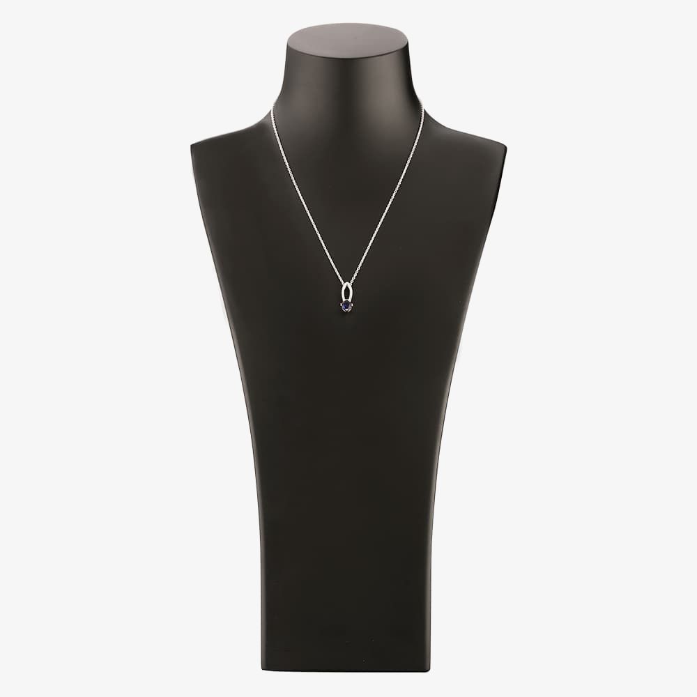 Introduce a pop of colour to your formal jewellery with these sapphire blue pendant and earrings. Each piece of the jewellery set contains a four claw-set blue centre stone, held prominently by a slight basket mount, which is crowned by a marquise halo of white cubic zirconia. The pendant has an integrated bale which is threaded onto a petite trace chain, whilst the tops of the droppers are slightly curved away from the stems for comfort.