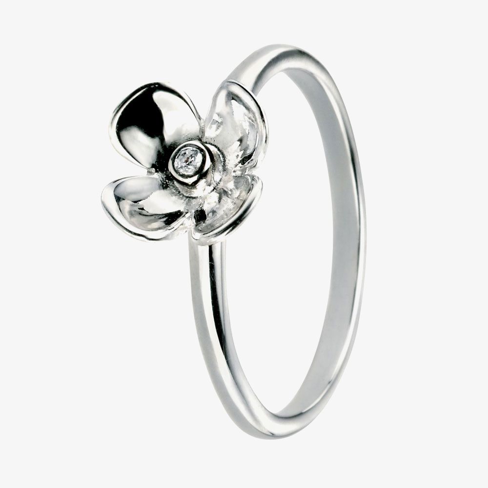 Add a touch of sparkle and glamour to your outfit with this beautiful sterling silver ring. Featuring a stunning clear cubic zirconia in the centre of a lovely silver flower, treat yourself or a loved one today.
