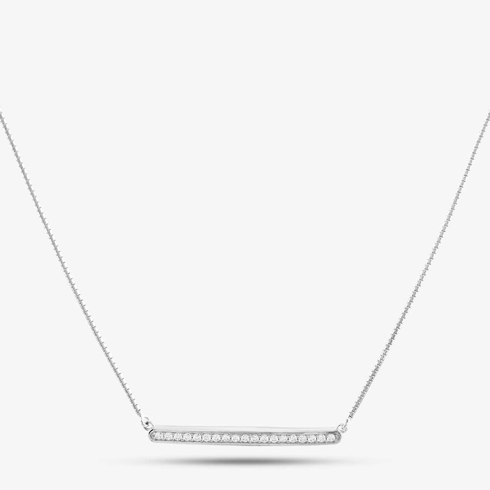 An elegant & sparkling necklace crafted from sterling silver which features a cubic zirconia set bar design and finished on a snake chain. Ideal for layering & combining with other necklaces to create your own unique look.