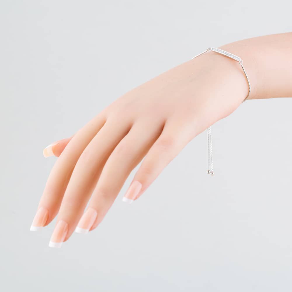 An elegant & sparkling bracelet crafted from sterling silver which features a cubic zirconia set bar design and finished with an adjustable toggle fastening. Ideal for layering & combining with other bracelets to create your own unique look.