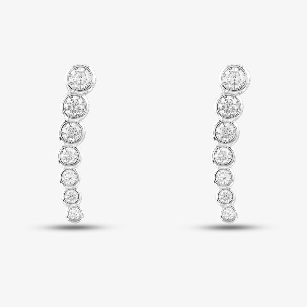 Elegant sterling silver dropper earrings showcasing seven sparkling cubic zirconia stones arranged in a graceful curved design, perfect for adding a touch of sophistication to any outfit.