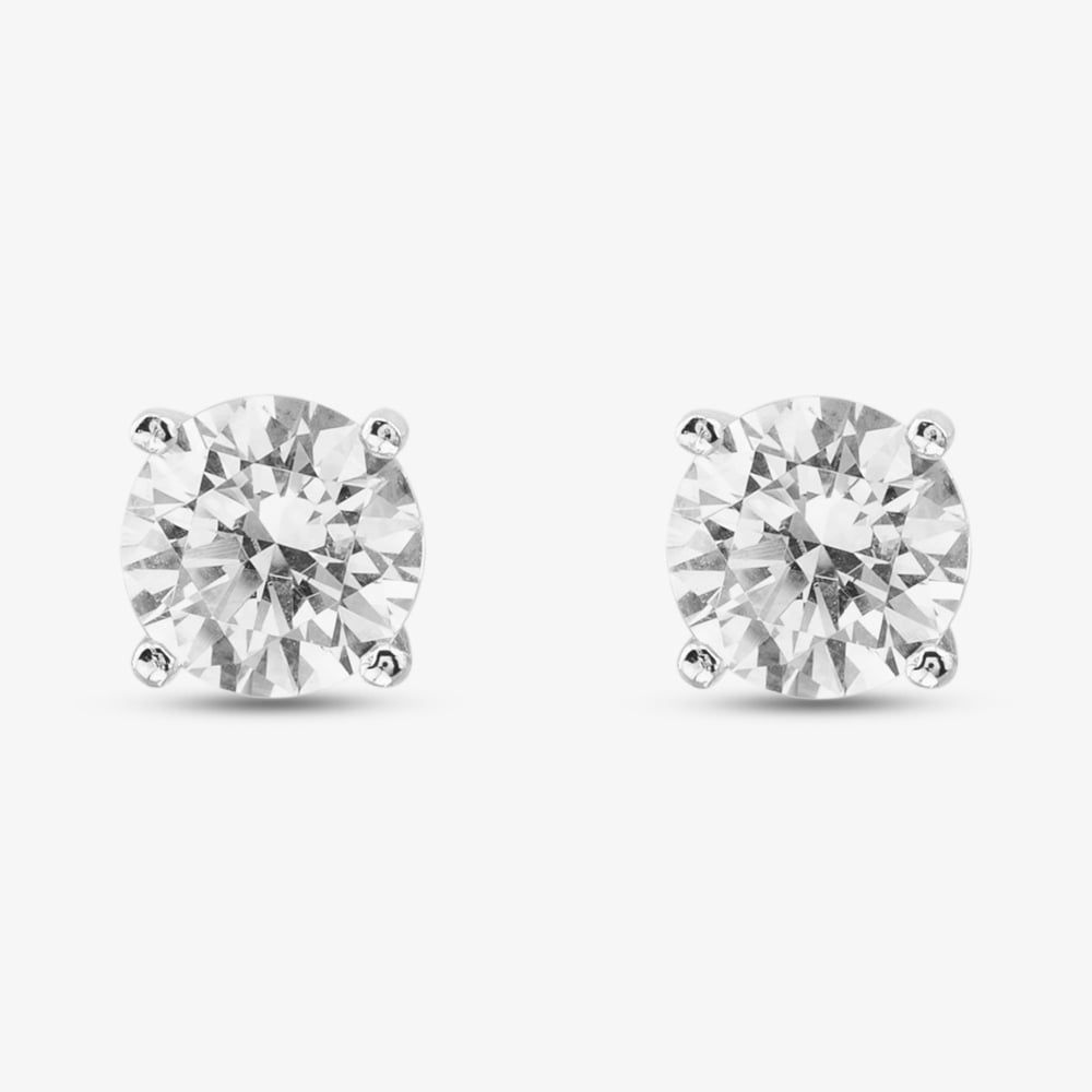 These sterling silver stud earrings feature classic round cubic zirconia stones set in a timeless four-claw setting. Their minimalist design enhances the brilliance of the stones, making them a versatile and elegant accessory for any occasion.