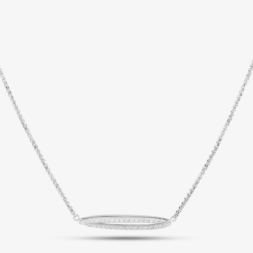 An elegant & sparkling necklace crafted from sterling silver which features a cubic zirconia set horizontal open oval design and finished on a box chain. Ideal for layering & combining with other necklaces to create your own unique look.