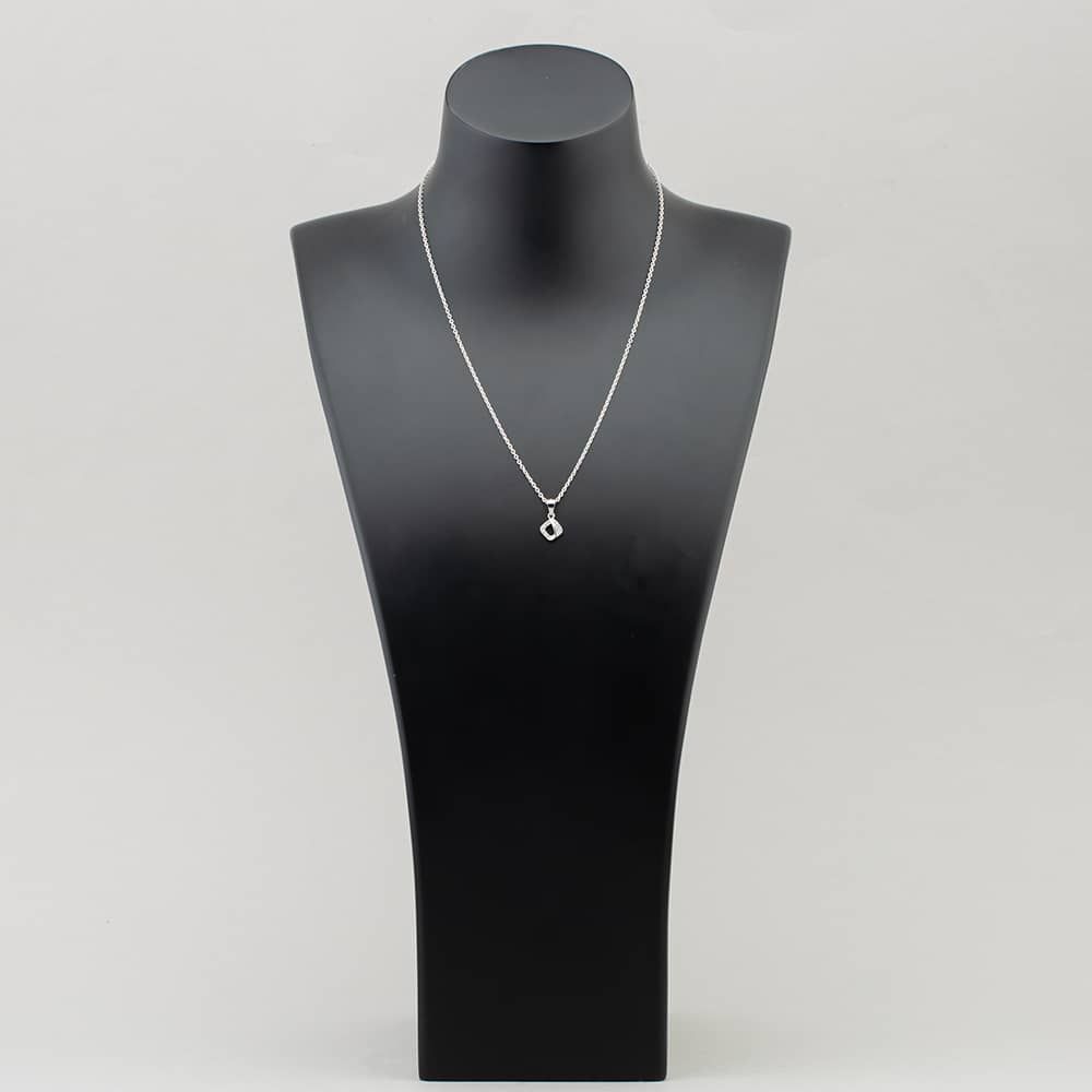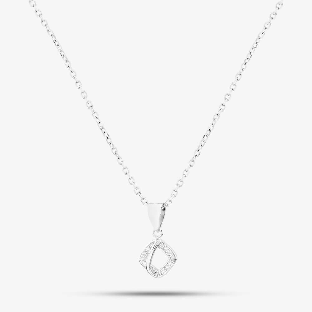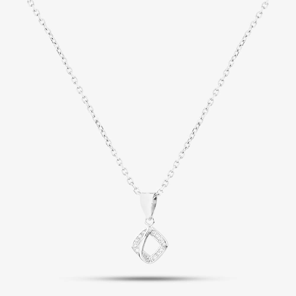 Contemporary meets vintage detail in this shimmering necklace. With the outer frame encrusted with cubic zirconia and lines with beaded detailing, an off-centre polished ribbon of silver crosses the open space to curl from one corner to the other.