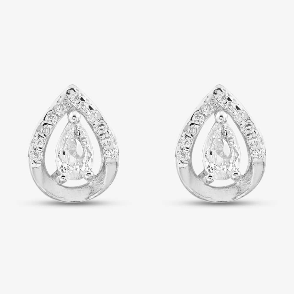 These beautifully delicate teardrop stud earrings are perfect for everyday wear or as a striking finish to your evening outfit. Crafted in sterling silver the earrings feature a pear cut cubic zirconia stone in a three pin setting. The stone is surrounded by a cubic zirconia pavé tear drop, which serves to accentuate the beauty of the centre stone. Wear individually or pair with the matching pendant to complete your look.