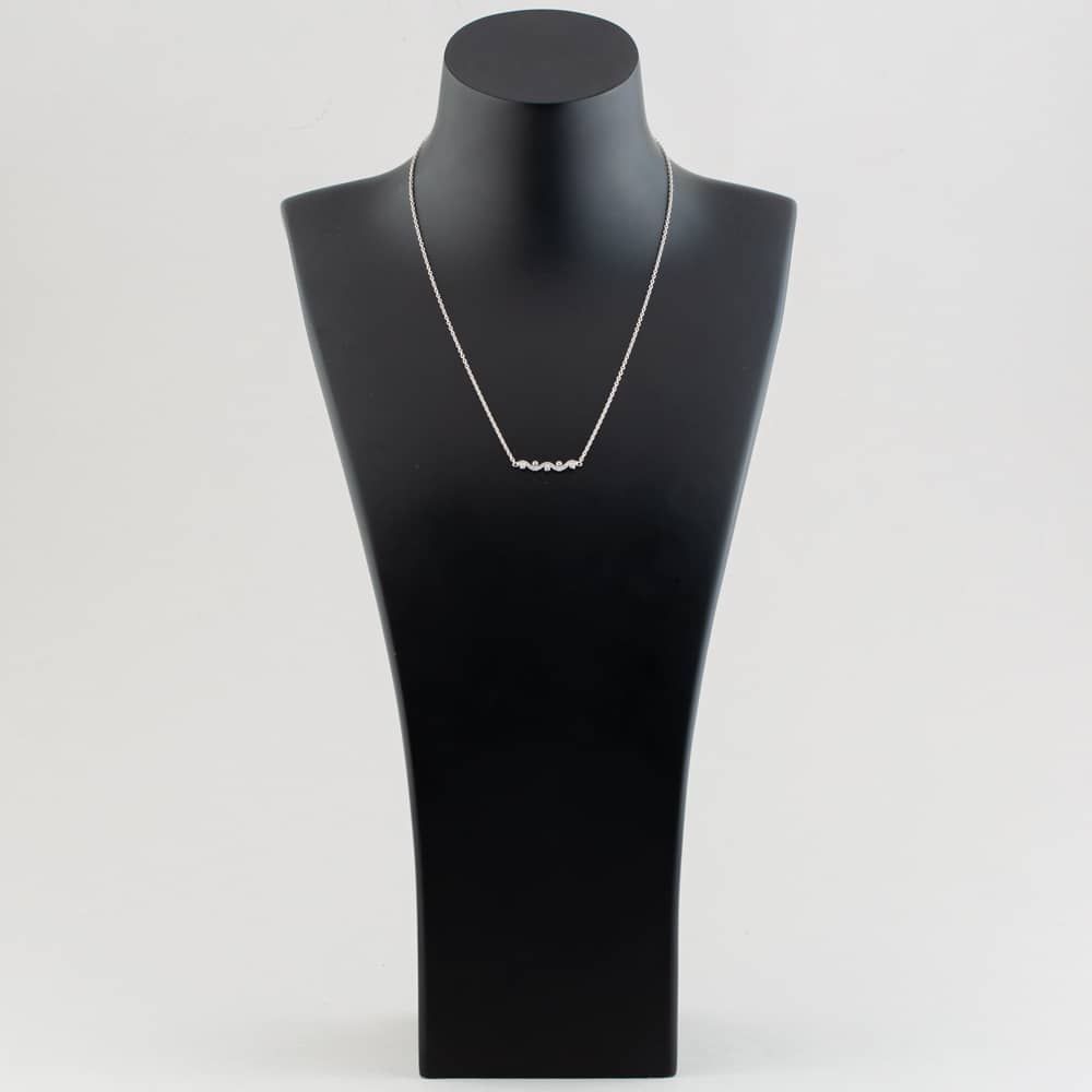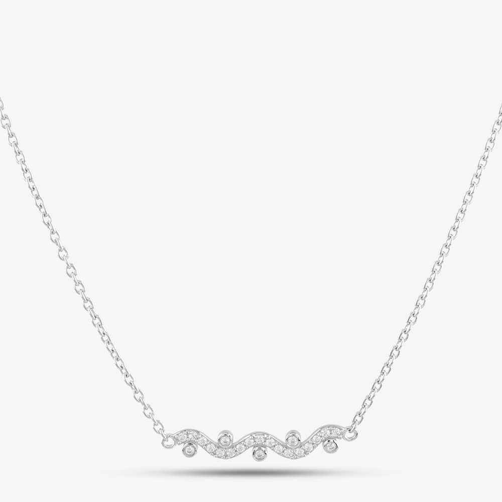An elegant & sparkling necklace crafted from sterling silver which features a cubic zirconia set wave & dot design and finished on a belcher chain. Ideal for layering & combining with other necklaces to create your own unique look.