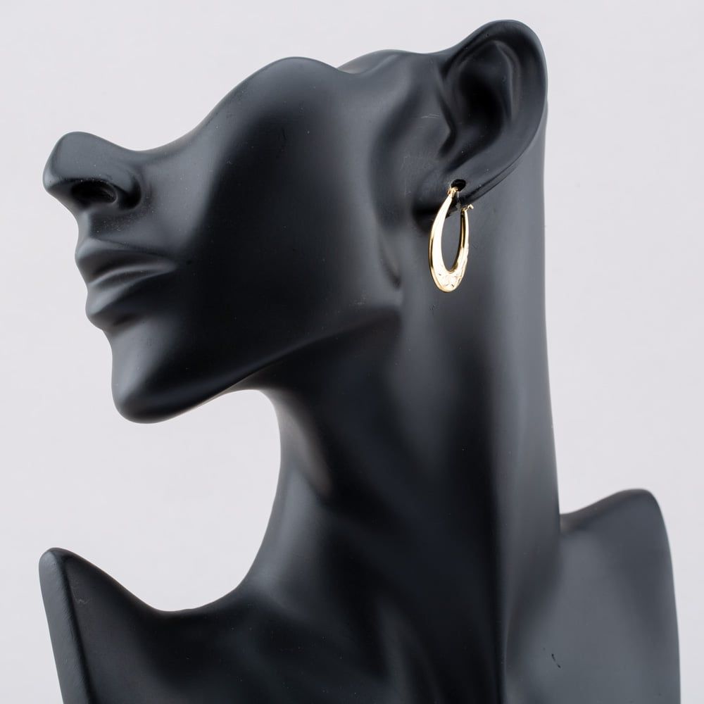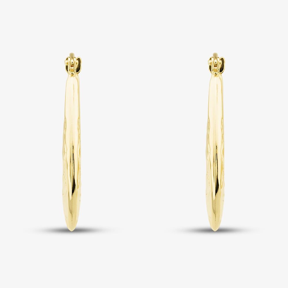 Add a touch of golden sophistication with these gold-plated sterling silver creole earrings, crafted in a classic oval shape. The intricate patterned design brings texture and elegance to a timeless silhouette. Lightweight and versatile, they are perfect for everyday wear or dressing up for special occasions.