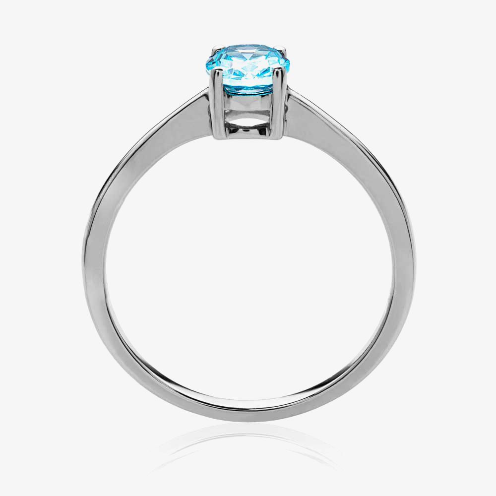 An attractive sterling silver ring in Marchs birthstone colour, this lustrous sterling silver piece has been expertly crafted to hold an oval faceted cubic zirconia stone in a traditional four claw setting, making this an ideal gift for yourself or a loved one.