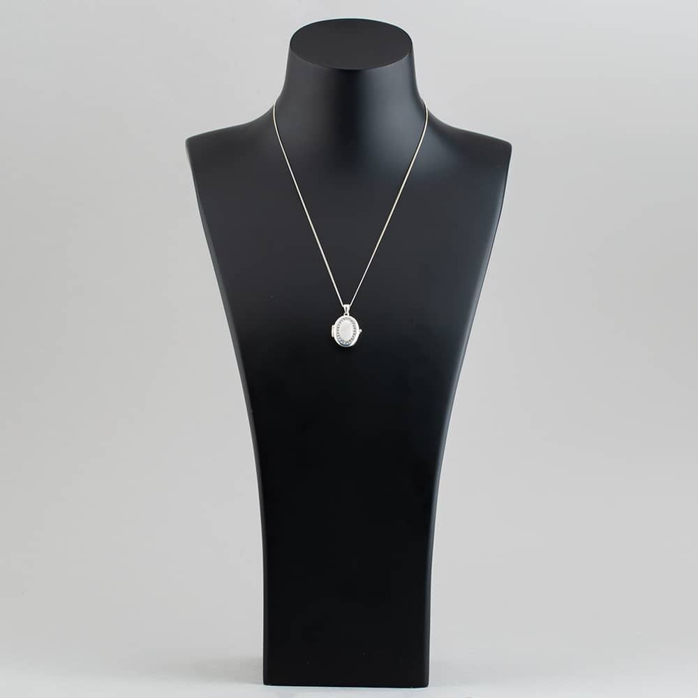 This oval sterling silver locket has a beautiful, simplistic design. Featuring dainty cubic zirconia stones, this gorgeous locket would look great with any outfit and is the perfect way to treasure your memories.