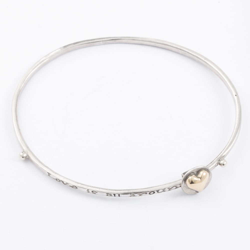 T.H.Baker Silver Oval Sliding Love Is All Around Heart Bangle NH270