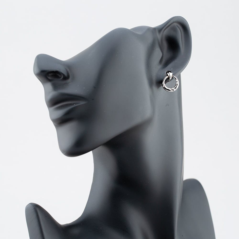 Sterling silver stud earrings featuring a sleek dropper design with a delicately patterned circular charm, offering a timeless and elegant accessory for any occasion.