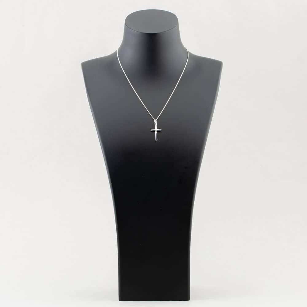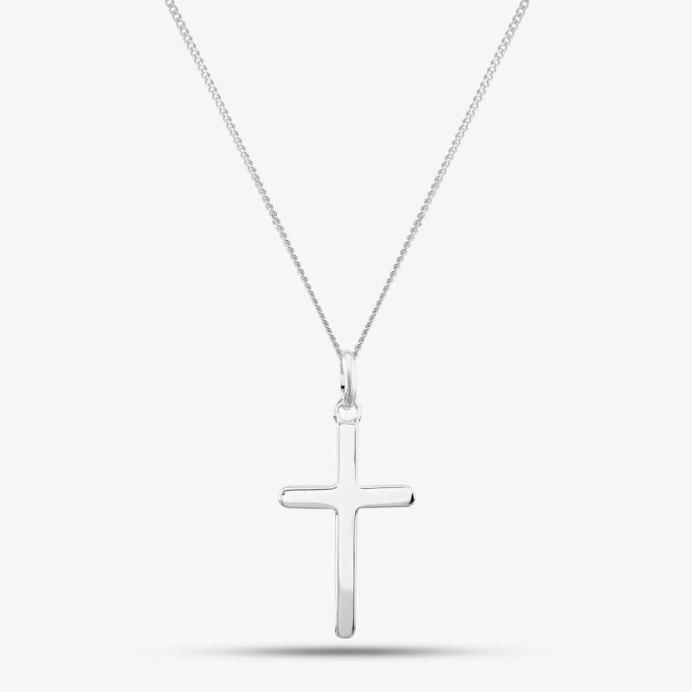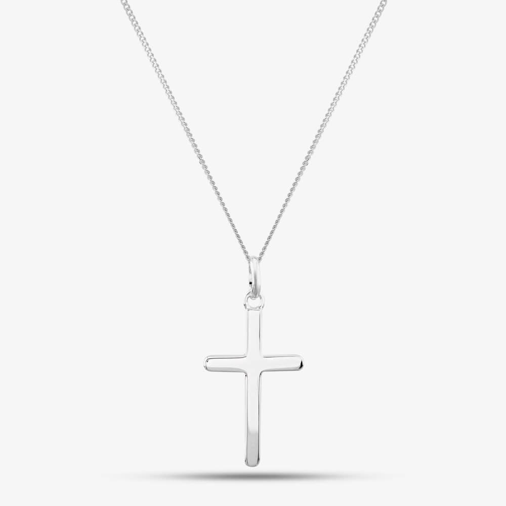 This elegant contemporary cross pendant is presented in sterling silver. Its sleek and stylish design is sure to suit any occasion.