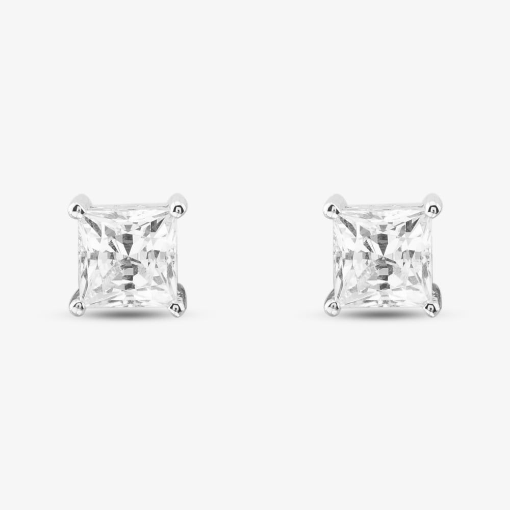 These silver stud earrings showcase dazzling princess-cut cubic zirconia stones in a secure four-claw setting. Their sleek and sophisticated design makes them a versatile choice for adding a touch of elegance to any outfit.