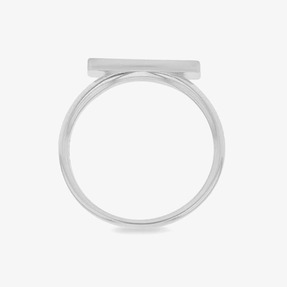 Crafted in sterling silver, this eye catching signet ring features a geometrical bar shape. The bar measures 13.8mm x 4mm and the ring is finished in a luxurious rhodium plating. Engrave the head of this ring with your initials.