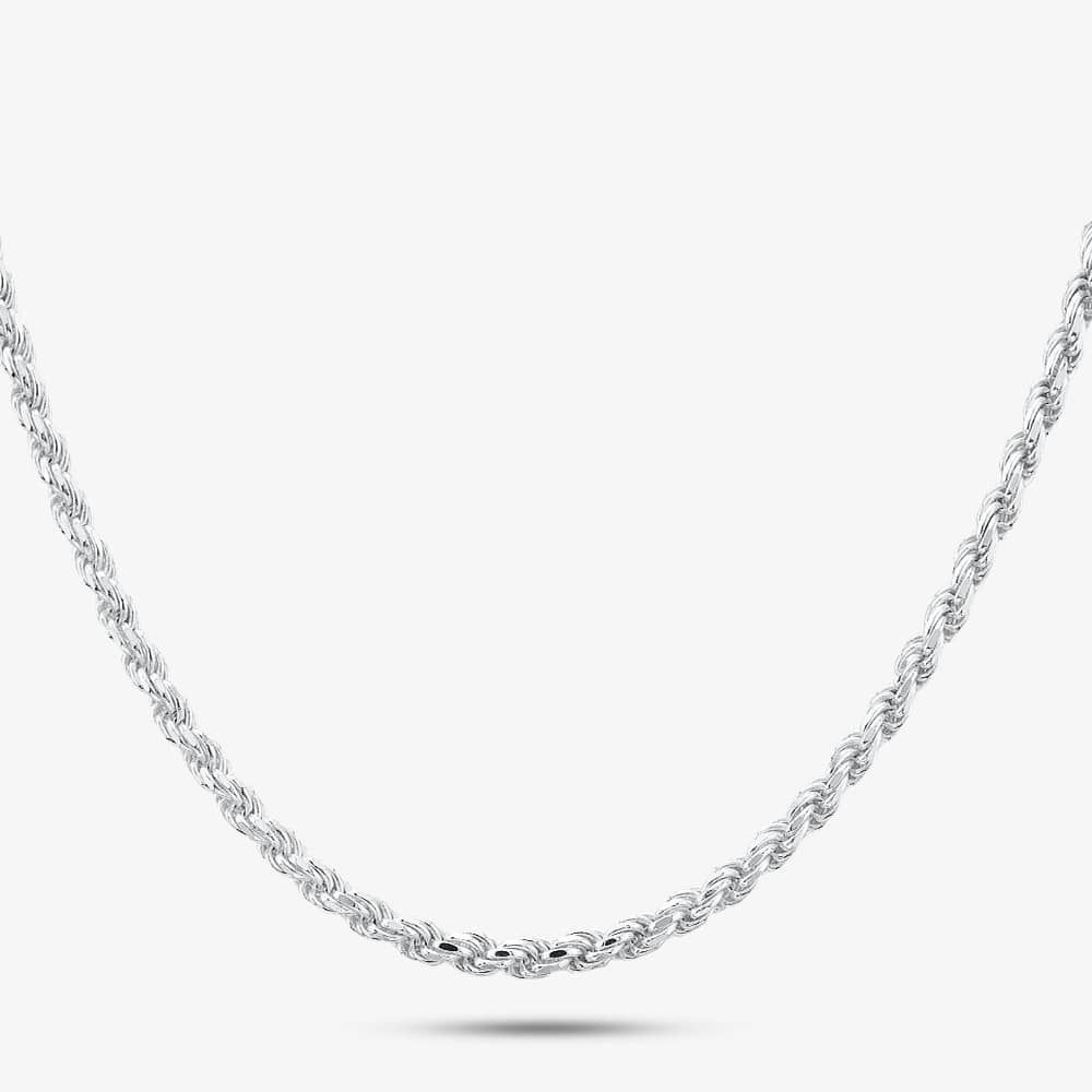 Elevate your style with this rope chain, crafted from the finest sterling silver. Perfect for layering or wearing solo, while the secure lobster claw clasp keeps it safely on your neck.