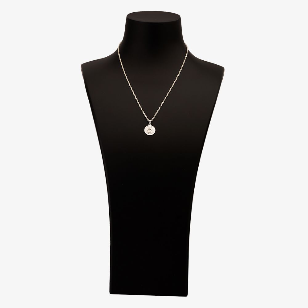 This chain features a classic medallion design realised in stunning silver. This embossed silver disc features a depiction of the religious figure the patron saint of travellers St. Christopher. Whether bought as a gift or for yourself this medallion is sure to bring you luck.